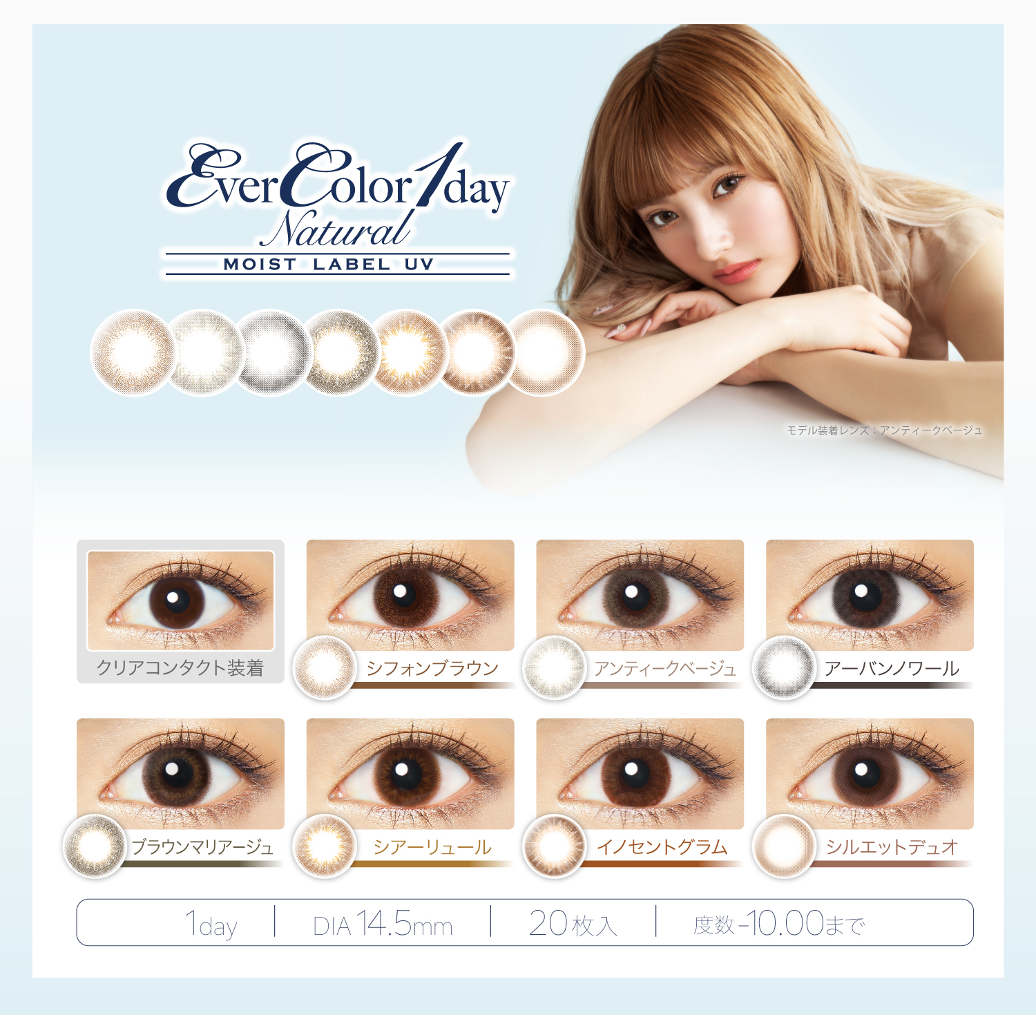 Ever Color Natural Moist Label UV 1Day 日本Ever Color 每日即棄有色隱形眼鏡 20片(Chiffon Brown)