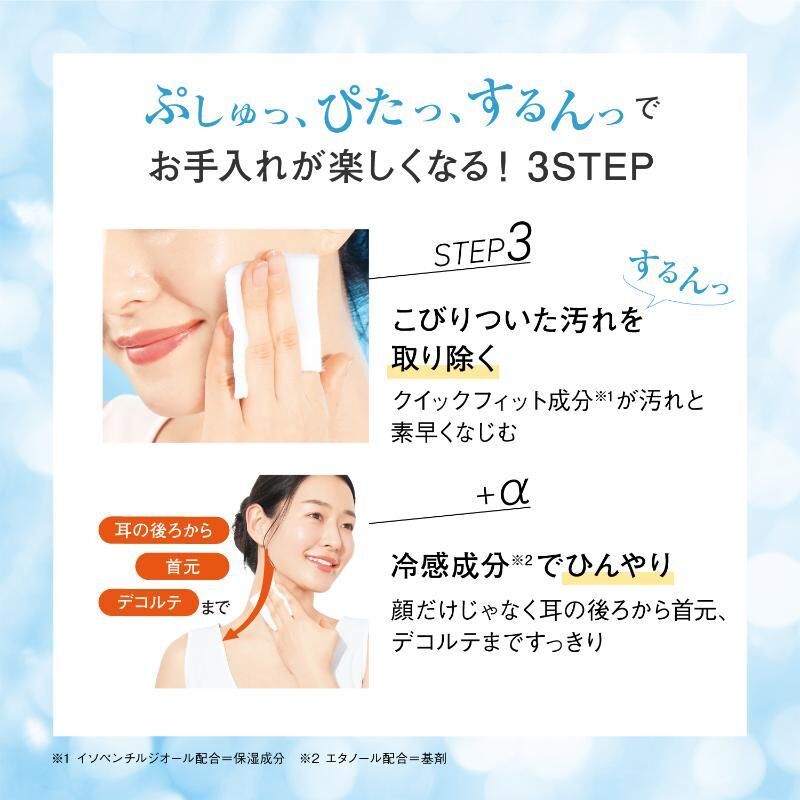配合化妝棉使用的化妝水,Quick Fit 成分可快速與污垢混合,使用化妝棉輕鬆去除老廢角質和污垢