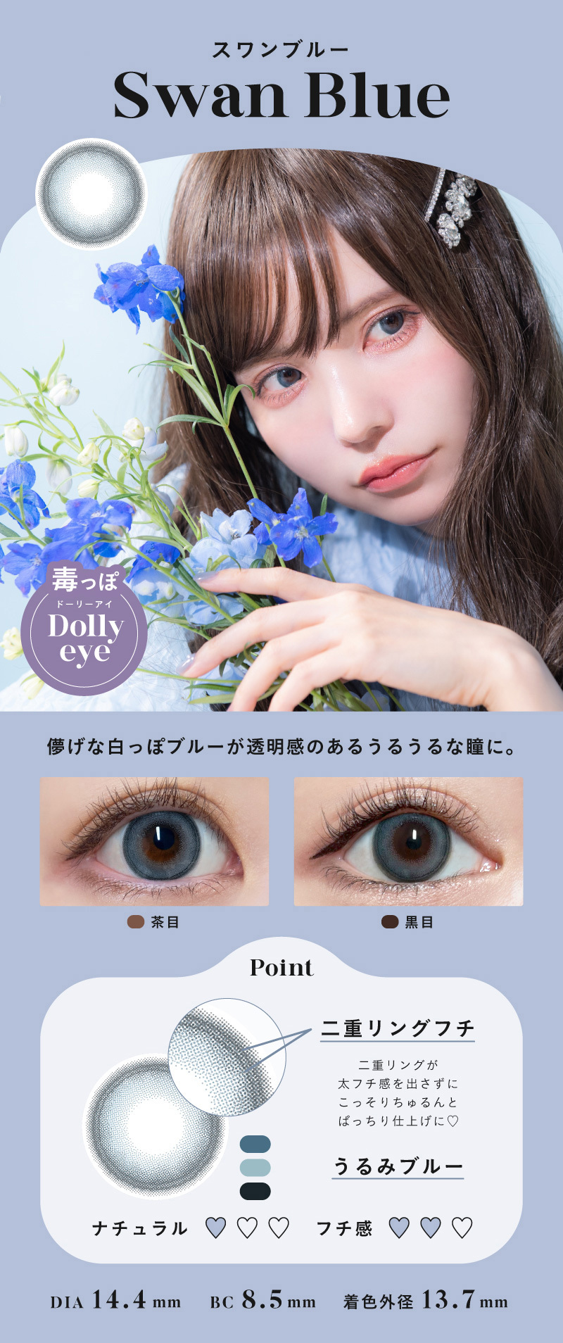 Bambi Series Angel Color Color Contact Lenses 每日即棄有色隱形眼鏡(1DAY) (10片) Swan Blue
